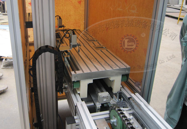 高鐵門自動裝配流水線技術優勢:針對高鐵門驅動部分,尺寸長短不一且很沉重,不好定位,設計一套能自動流動工裝小車,小車采用一組帶手動離合驅動小車,一組被動小車,且產品放到主驅動小車,通過一個升降壓板壓緊產品的底板(可適應2-6mm的底板),另一組被動小車依產品長度調到合適位置,由升降壓板壓緊定位好進行產品組裝,組裝一部分后,由輸送帶送至下一站,進行下一道工藝組裝,一共進行9道工序組裝后,產品取下,工裝小車由提升機送至下層返回輸送帶,從另一頭起點提升循環使用。