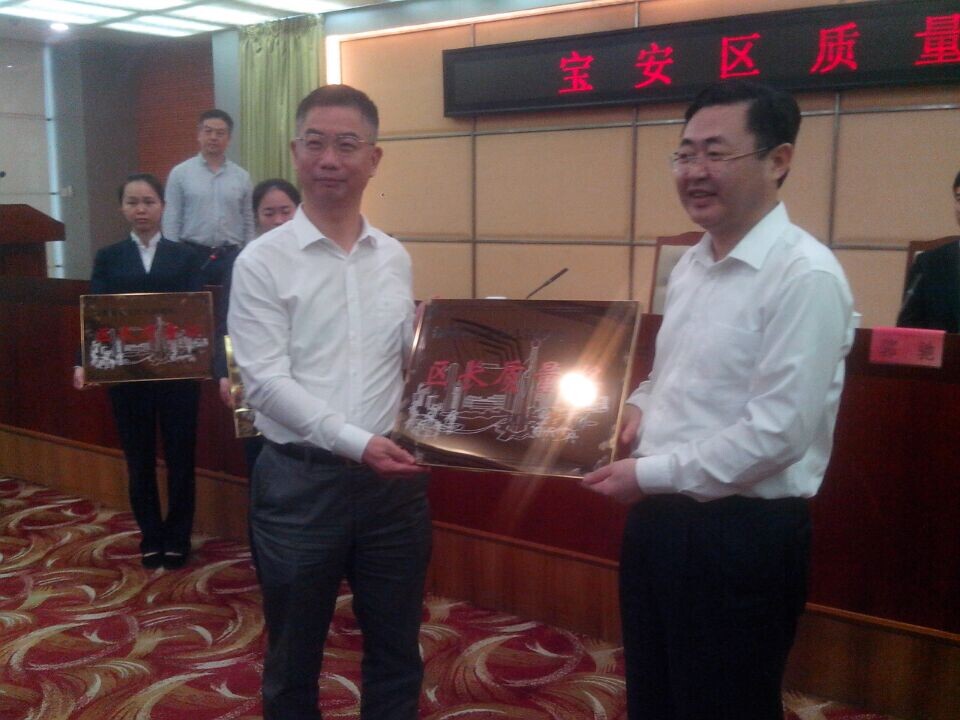區長王宏彬同志為獲獎企業頒發了獎杯,獎杯上“以質取勝碩果累,寶安品牌新標桿”的大字激勵著我們質量工作者并就全區質量工作做了重要講話,主要有以下內容: