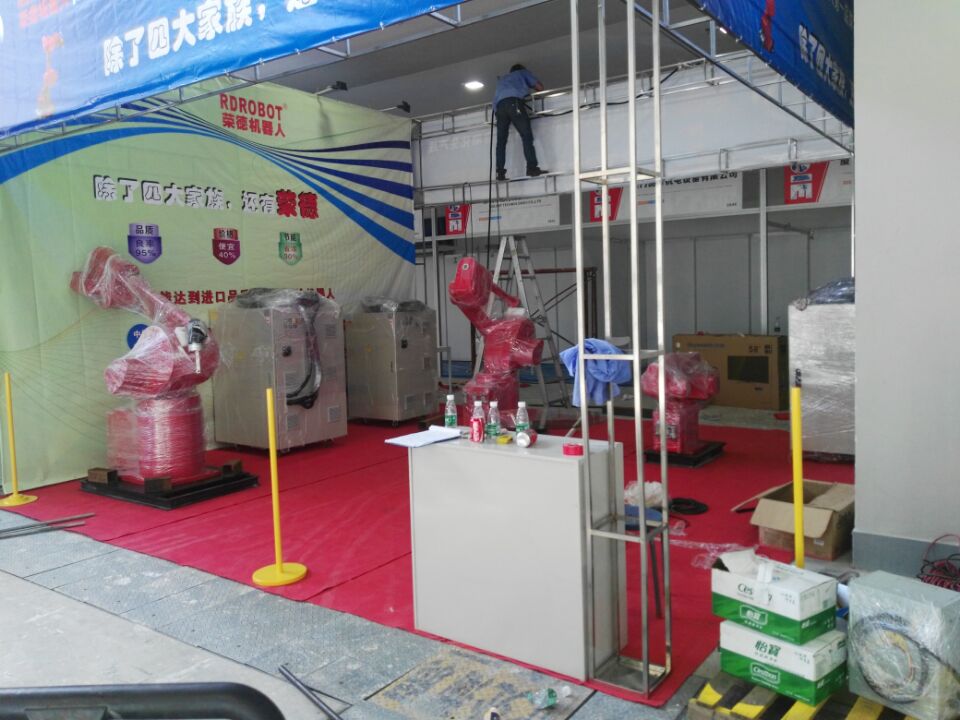 為了展示我們的機器人,給大家留個好印象,從決定參加展會后,就進入積極準備階段,重新設計的宣傳冊等相關資料。就在昨天,我們的同事不辭辛苦,頂著40多度高溫,前去搭建會場,現會場所有東西到到位,噴涂機器人設備也已安裝好了,就等您的到來!
