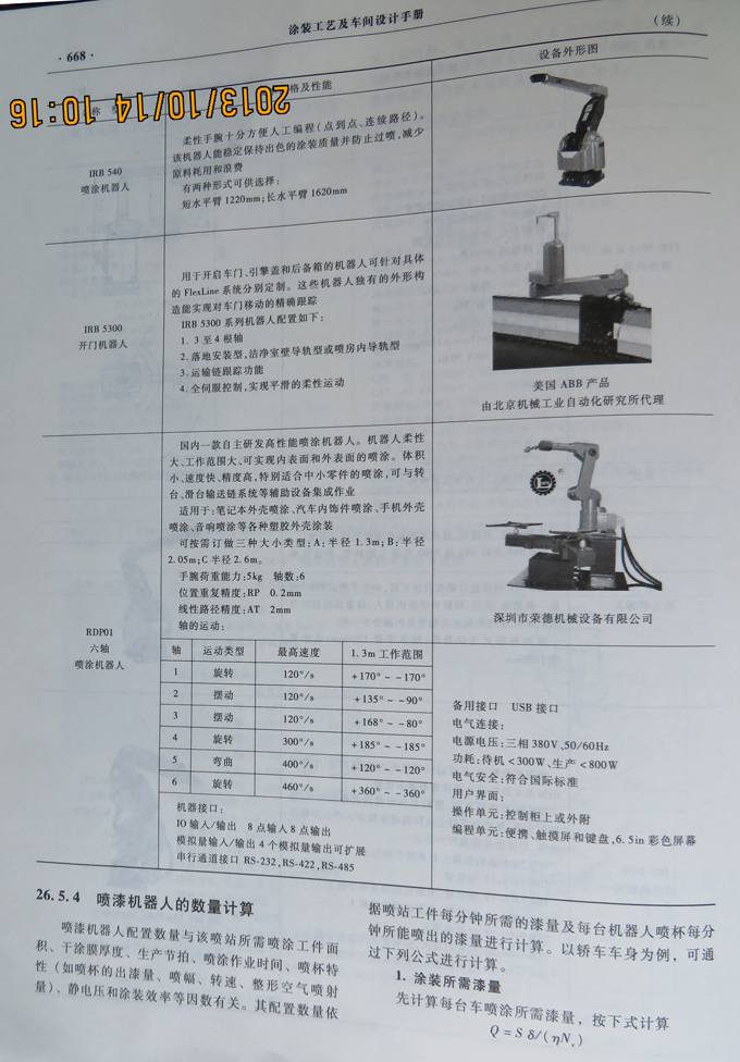 熱烈祝賀我司噴涂機器人榮登《涂裝工藝車間設計手冊》