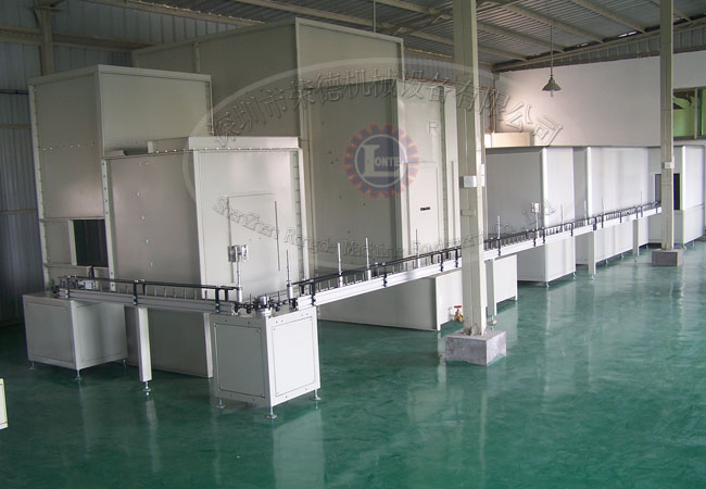 手機(jī)外殼噴涂線(xiàn)(spindle噴涂線(xiàn)): 靜電除塵、噴涂、烘干全自動(dòng)流水線(xiàn)作業(yè),用人少,適合批量連續(xù)生產(chǎn),產(chǎn)量高、涂層面均勻;全封閉無(wú)人操作噴涂作業(yè);生產(chǎn)合格率高,品質(zhì)穩(wěn)定;輸送鏈條與軌道接觸點(diǎn)配置軸承配合精準(zhǔn)的軌道,運(yùn)轉(zhuǎn)時(shí)輕快順暢、平穩(wěn)不抖動(dòng)。