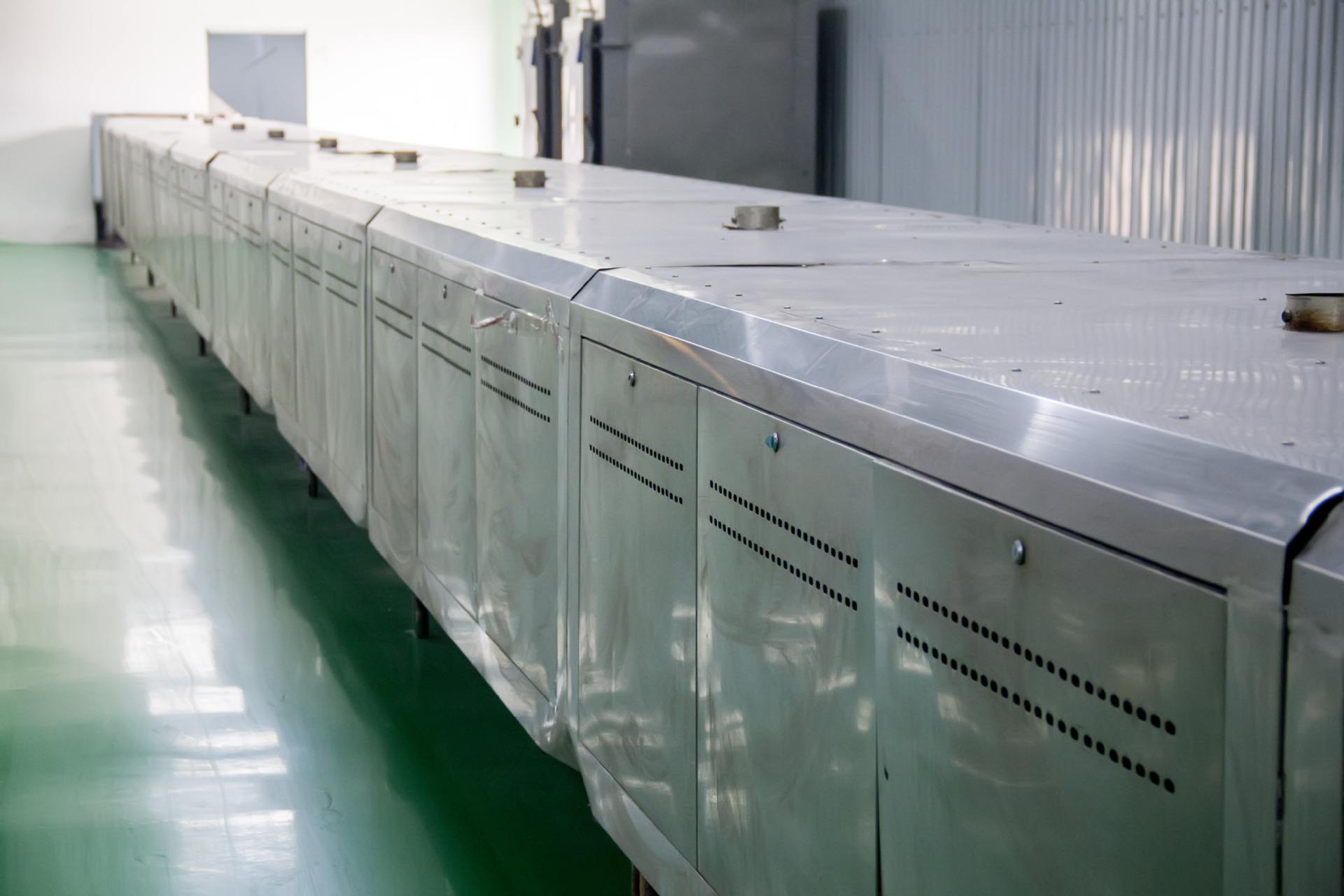 烘干箱采用保溫隔熱,使用巖棉耐火纖維填充,厚度不低于50MM。烘干箱采用全封閉結(jié)構,兩端進出口高度為25MM-130MM可調(diào)。箱體加熱方式采用暖風加熱,內(nèi)部做風道流通管道,要求:A、暖風溫度在環(huán)溫0—100℃可調(diào)整,風量和加熱采用單獨控制,當溫度達到設定最高溫度時加熱停止,當?shù)陀谠O定最低溫度時加熱啟動。B、箱體內(nèi)的平均風速要求大于2m/s,并且可以調(diào)整2m/s-4m/s之間(檢測距離風口5CM處)。C要求箱體內(nèi)的溫度,風速均勻,風口方向由側(cè)面往流水線方向送風,要求風道口對著流水線板件上表面,板件高度5MM-25MM,風道側(cè)面采用一邊吹一邊吸方法。