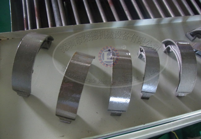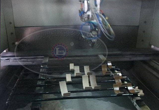 剎車片自動噴涂設備由自動噴涂部分、粉末固化部分、冷卻部分等組成,該設備的特點是節能效率高,使用雙槍30度噴涂,死角少,遠紅外粉末固化,上粉好,噴涂快,固化快,冷卻也快。