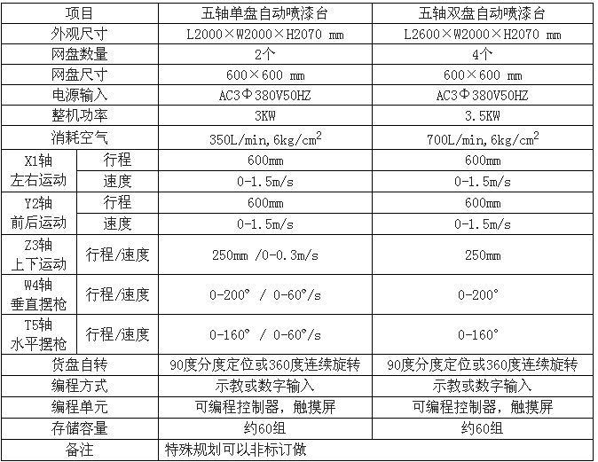 榮德六軸自動噴涂機技術(shù)參數(shù)